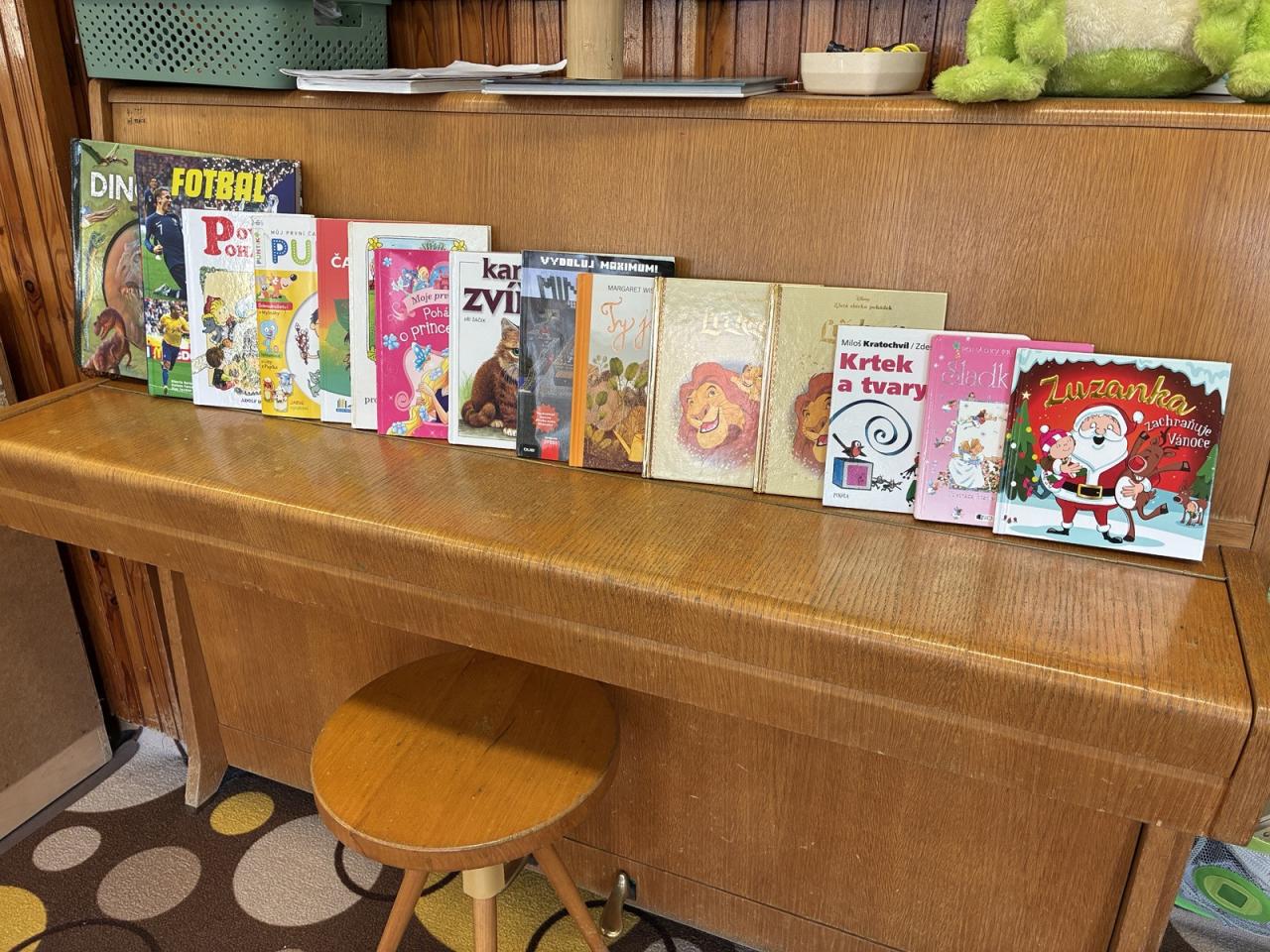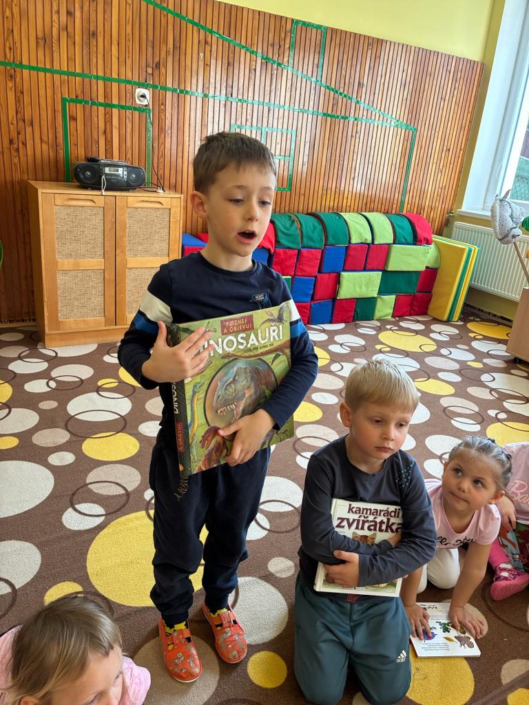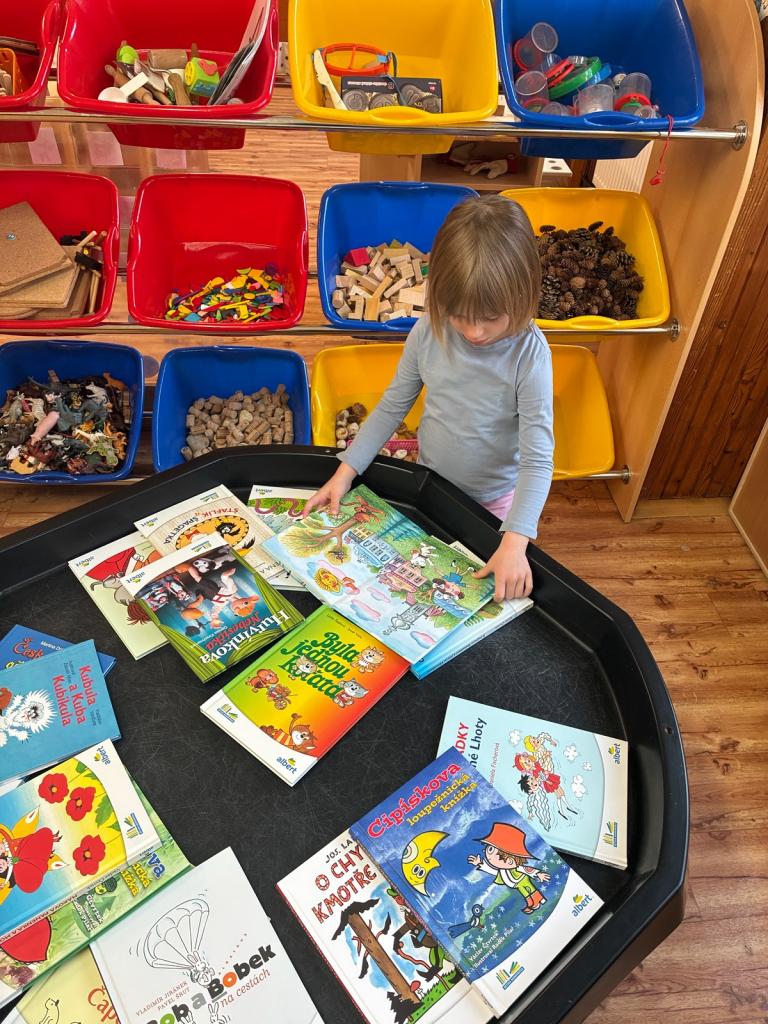 Děti si přinesly své oblíbené knížky z domova a představily je ostatním kamarádům. Ve třídě tak vznikla krásná výstavka plná pohádek a dětských příběhů. Knihy jsme si společně prohlíželi a četli si z nich před odpoledním odpočinkem. Povídali jsme si také o tom, jak se ke knihám správně chovat.