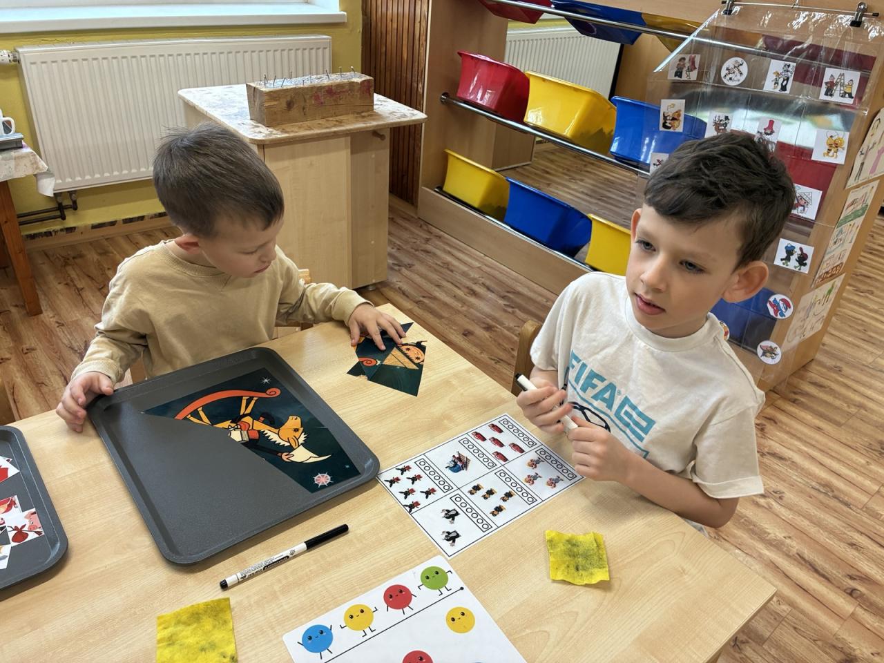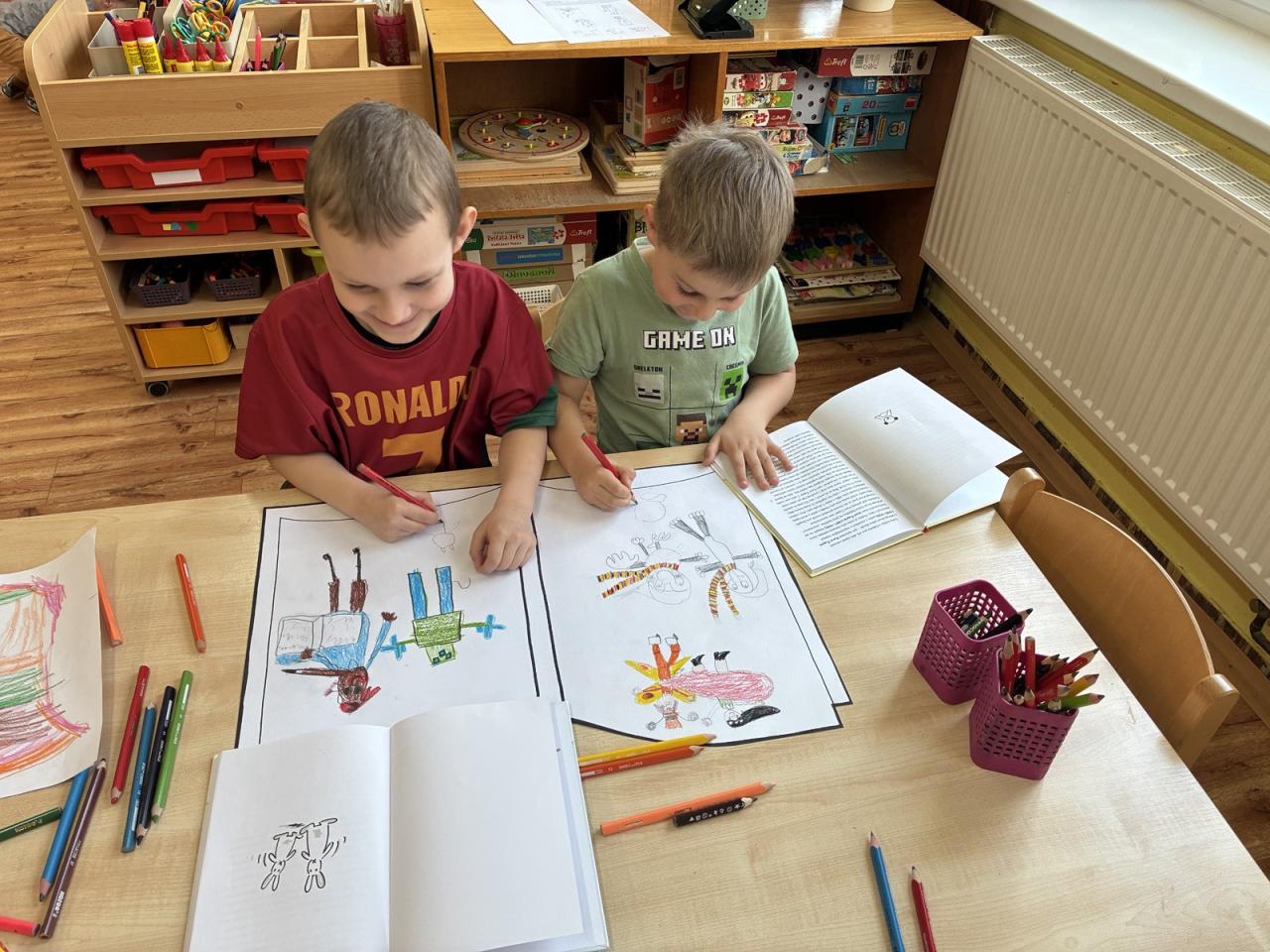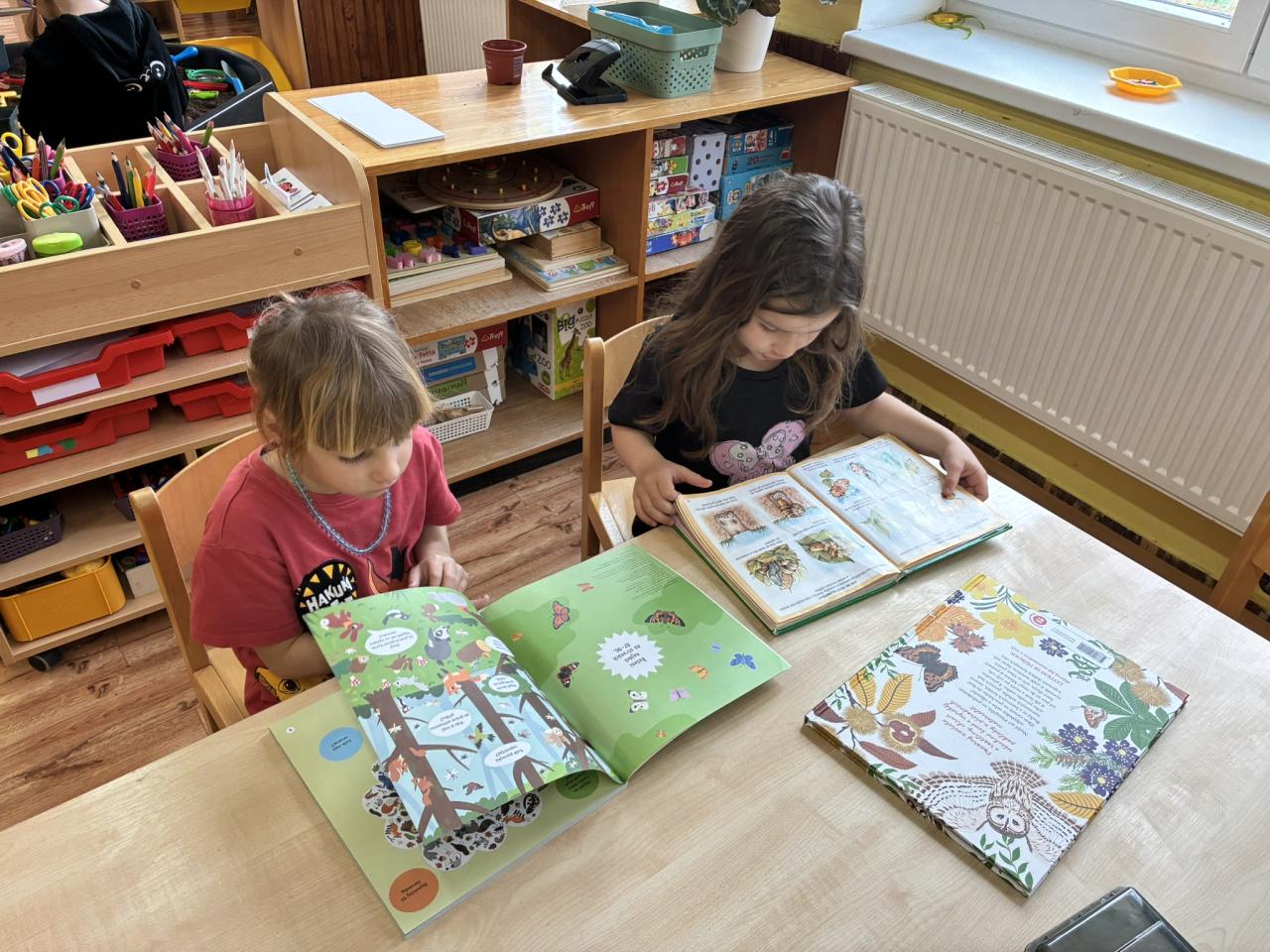 Děti si přinesly své oblíbené knížky z domova a představily je ostatním kamarádům. Ve třídě tak vznikla krásná výstavka plná pohádek a dětských příběhů. Knihy jsme si společně prohlíželi a četli si z nich před odpoledním odpočinkem. Povídali jsme si také o tom, jak se ke knihám správně chovat.