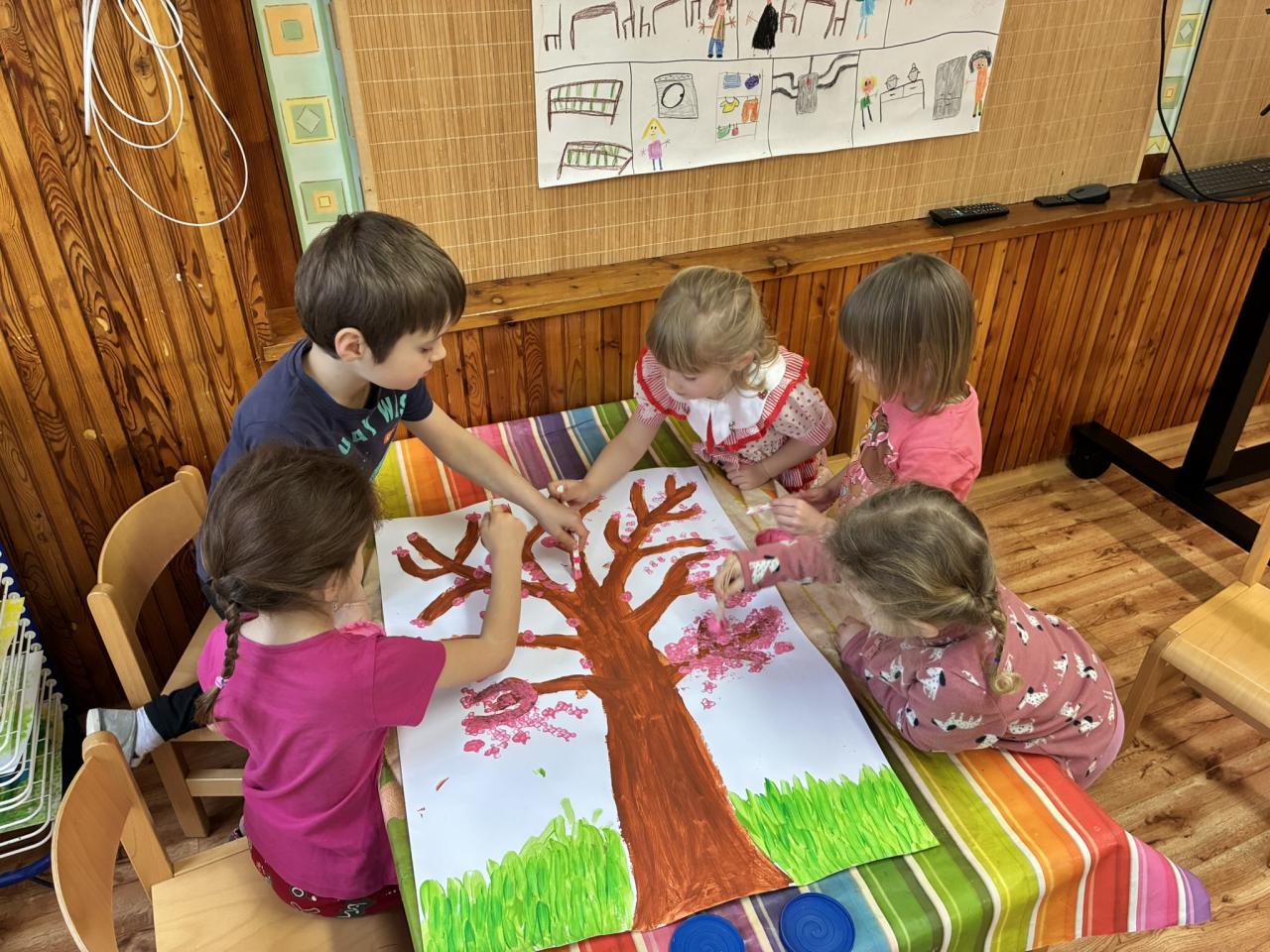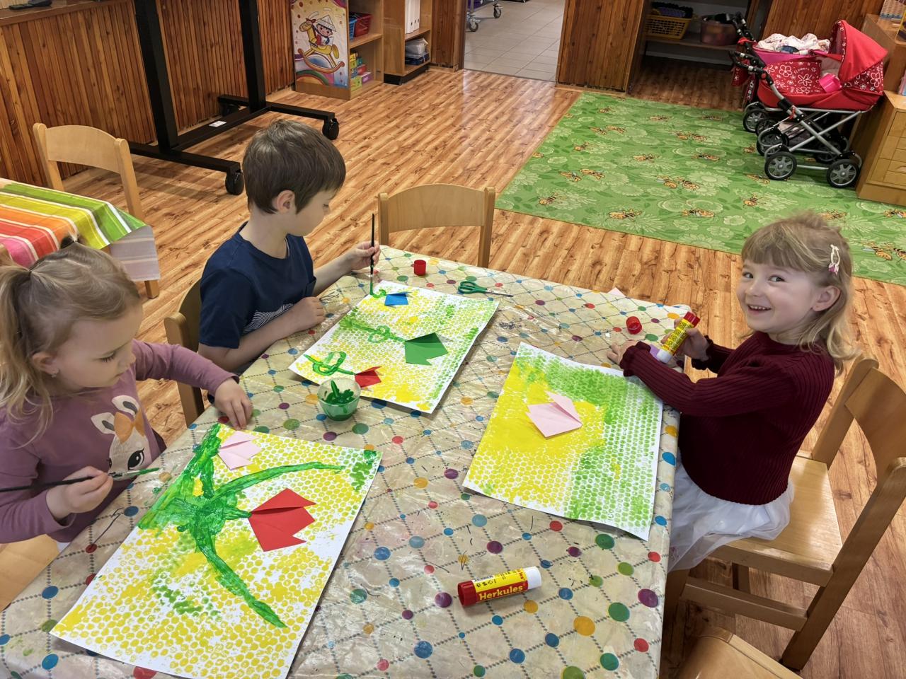 Jaro jsme nejen pozorovali, ale i oslavovali – zpívali jsme, tančili a tvořili obrázky s jarními motivy.