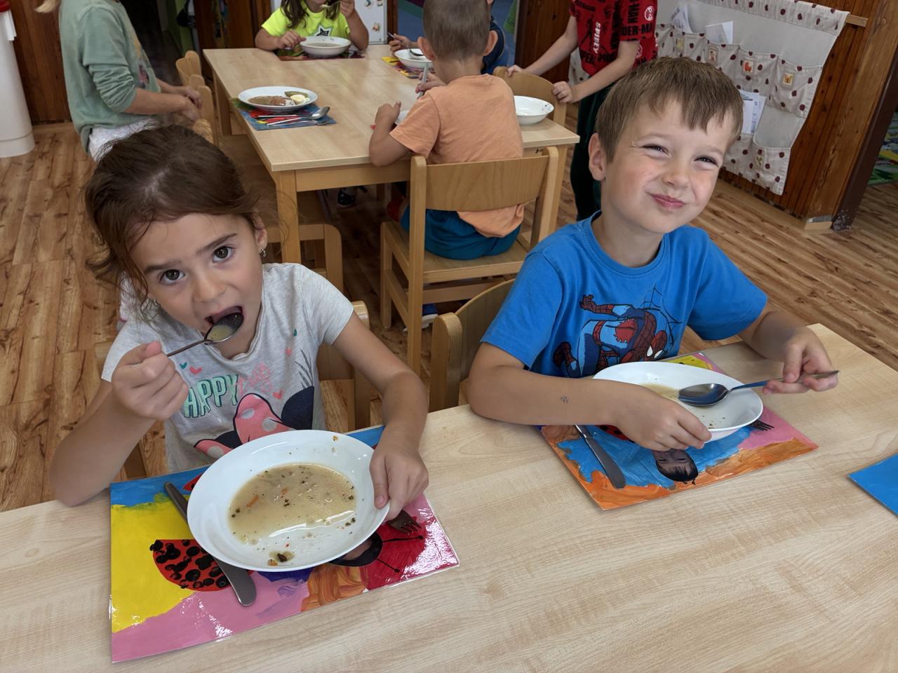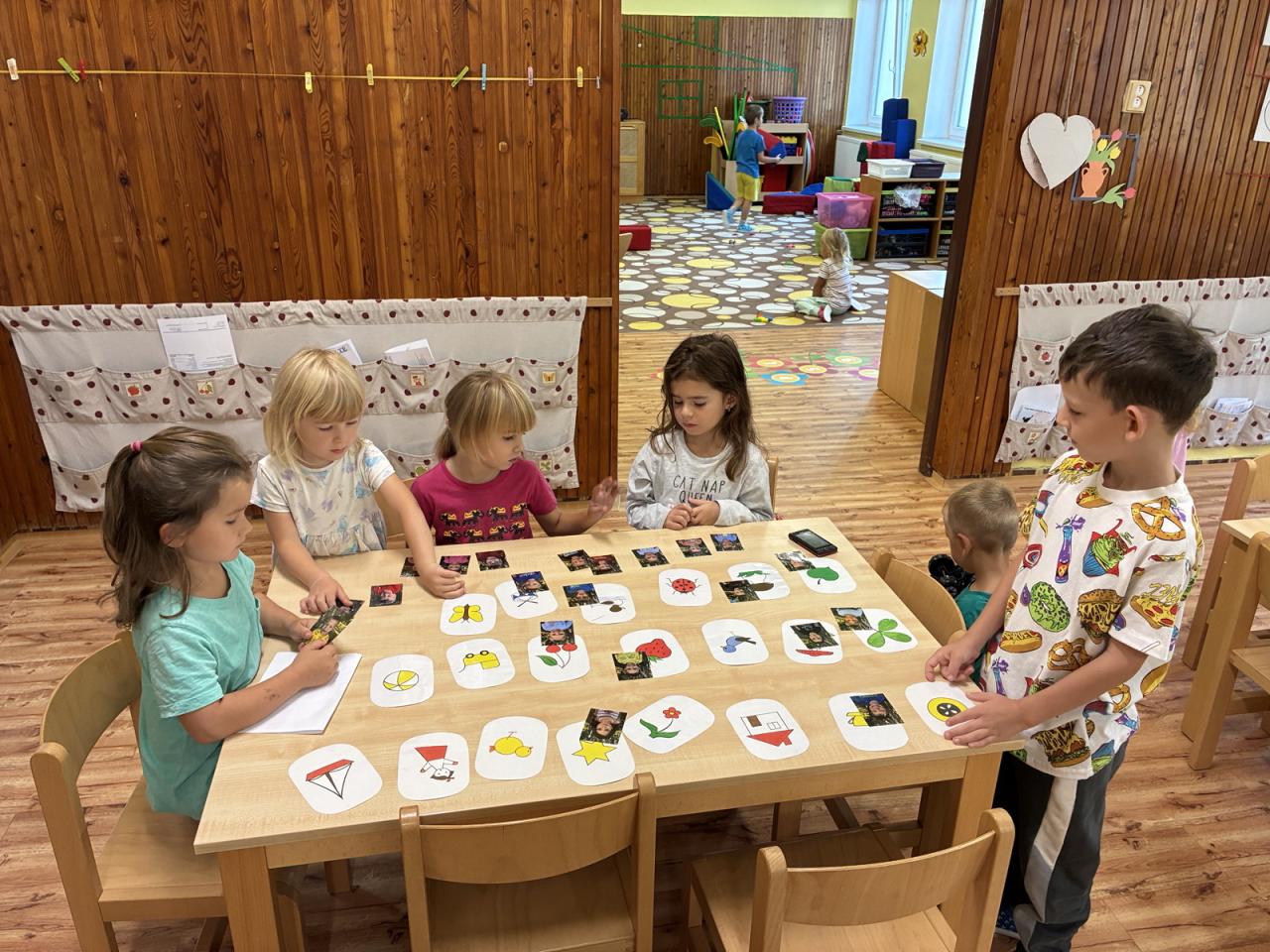 Učili jsme se poznávat své značky, kam patří naše věci, a také jak správně uklízet hračky na své místo. Povídali jsme si o tom, jak ve školce stolujeme, jak se chováme při jídle i při hrách. Postupně jsme si připomněli a vytvořili pravidla, která nám pomáhají, aby nám tu bylo všem dobře. Hráli jsme spoustu seznamovacích her, které nám pomohly překonat počáteční ostych a vytvořit přátelskou atmosféru.
