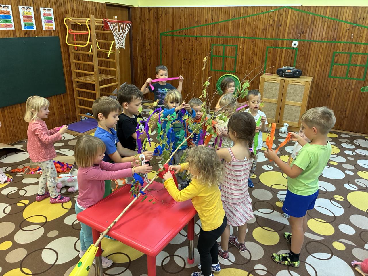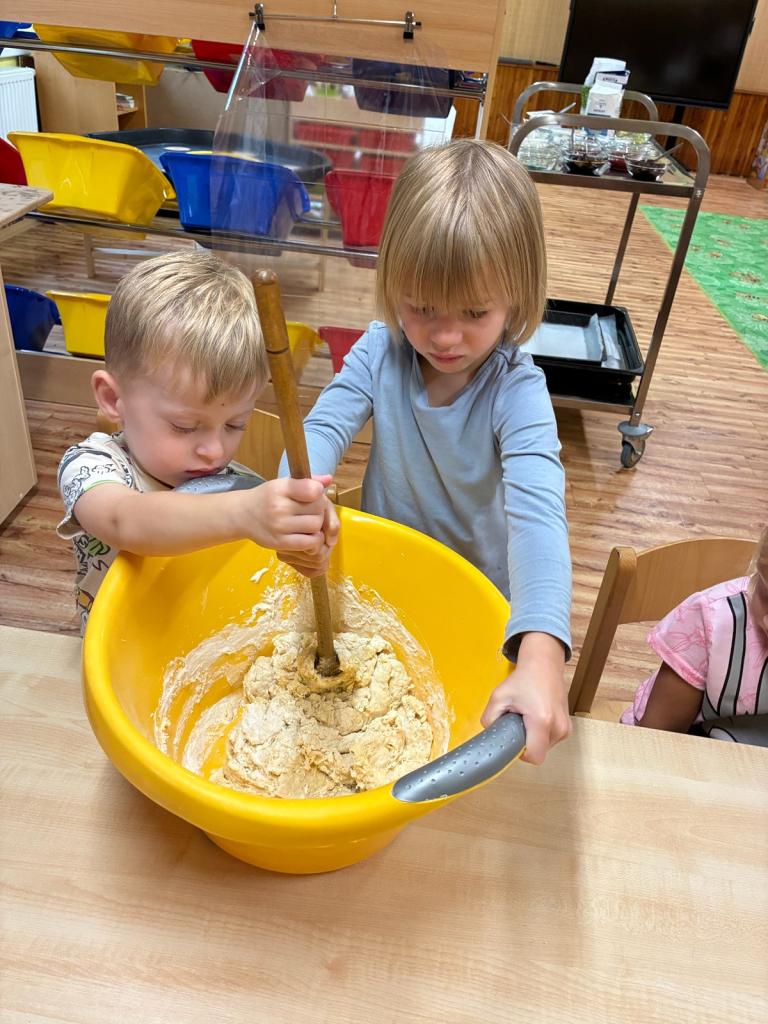 Jakmile jsme se ve školce trochu zabydleli, začali jsme s druhým tématem „Jak to chodí u nás“. V Práčích se chystalo SVATOVÁCLAVSKÉ POSVÍCENÍ, a tak jsme si takové posvícení uspořádali i u nás ve školce. Povídali jsme si o této krásné tradici, poslouchali lidové písně, zpívali, tančili a nechyběly ani koláče, které jsme si sami upekli. Společně jsme zdobili májku a poznávali, jak se dříve slavilo na vesnicích. Během měsíce jsme si také vytvořili PLÁN NAŠÍ ŠKOLKY a TŘÍDNÍ PRAVIDLA, která si každý den připomínáme. Učíme se vzájemné ohleduplnosti, pomoci kamarádům i tomu, jak se ve školce cítit spokojeně a bezpečně.